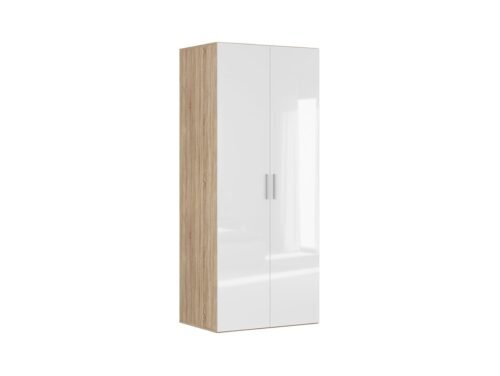 ארון בגדים 2 דלתות לבן מבריק בשילוב עץ