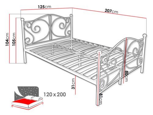 120: אורך: 207 ס”מ, רוחב: 125 ס”מ, גובה: 105 ס”מ, אזור שינה: 200 על 120 ס”מ,