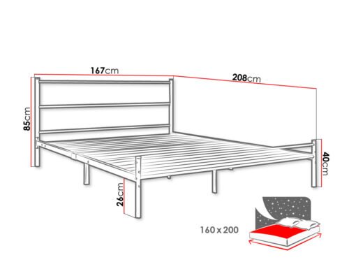 בבחירת מיטת מתכת אתה מבטיח עמידות, ניקוי קל של המסגרת ונוחות בניקוי הרצפה. Bengrio 0501 הינו מנוחה נוחה לשני אנשים, שכן אזור השינה הוא 200 על 160 ס”מ. מושלם לכל סגנון, מכיוון שהוא משלב שמץ של מודרניות עם קלאסיות.