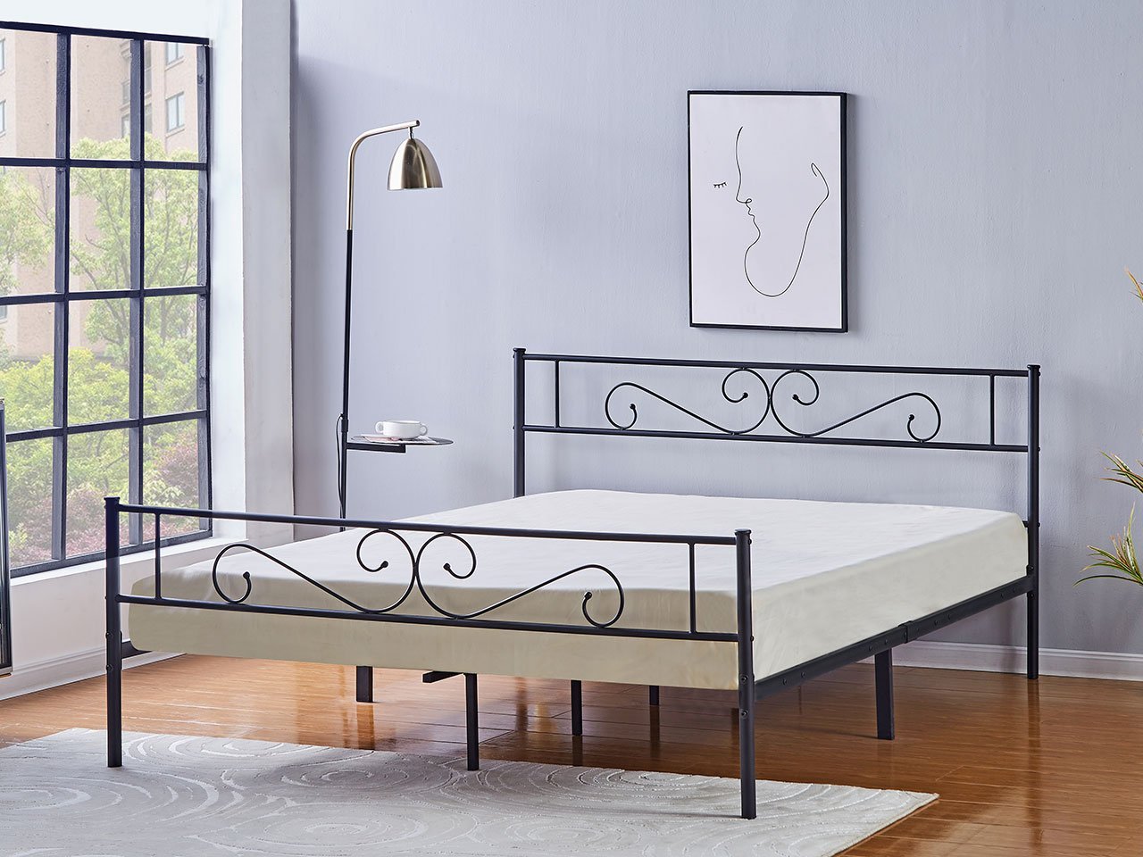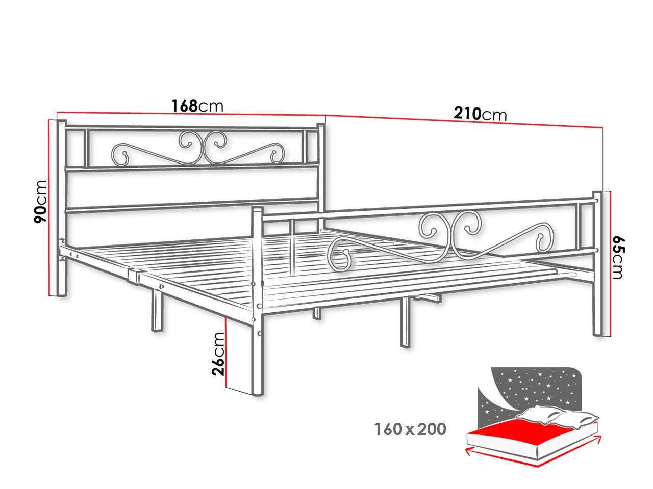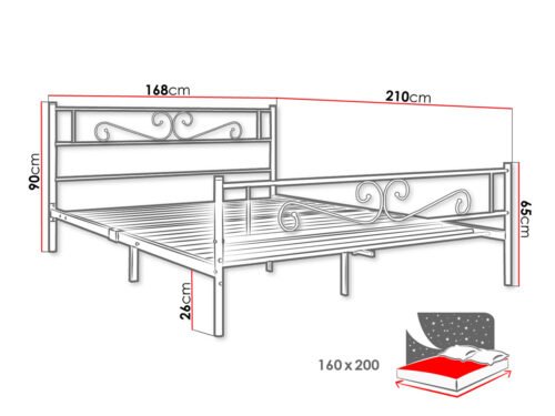 בסיס מיטה זוגי בעיצוב מסגרת מתכת דקורטיבית. מתאים בצורה מושלמת לתוך החדר שינה. אזור שינה של 200 על 160 ס”מ יאפשר לך להתחדש בנוחות לאחר יום שלם.