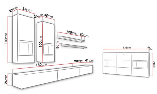 רוחב: 180 ס”מ/ גובה: 25 ס”מ/ עומק: 41 ס”מ - ארון טלוויזיה קטן: