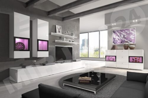 יחידת קיר לסלון מודרני כולל מזנון טלוויזיה, 2 ויטרינות ומדף תלוי