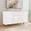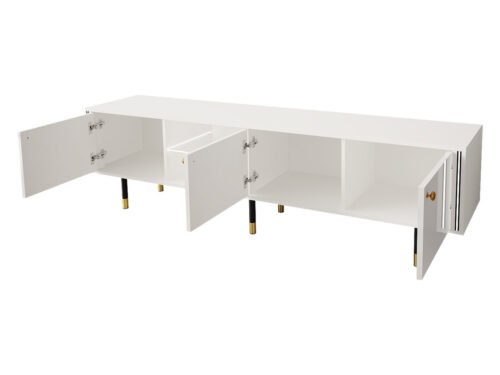 ידיות השידה מוזהבות, חזיתות הדלתות מבריקות והרגליים מסוגננות ומועשרות בגימור מנוגד ודקורטיבי.