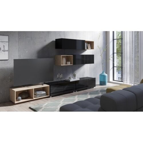 - מזנון טלוויזיה / תא הינם אלמנט אוניברסלי – עומד (רגלי כסף 5 ס”מ) או תלוי לבחירה