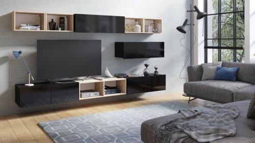 - מזנון טלוויזיה / תא הינם אלמנט אוניברסלי – עומד (רגלי כסף 5 ס”מ) או תלוי לבחירה