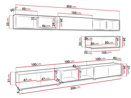- מזנון טלוויזיה X2: רוחב: 100 ס”מ/ גובה: 37 ס”מ/ עומק: 43 ס”מ