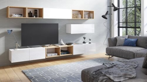 - מזנון טלוויזיה / תא הינם אלמנט אוניברסלי – עומד (רגלי כסף 5 ס”מ) או תלוי לבחירה