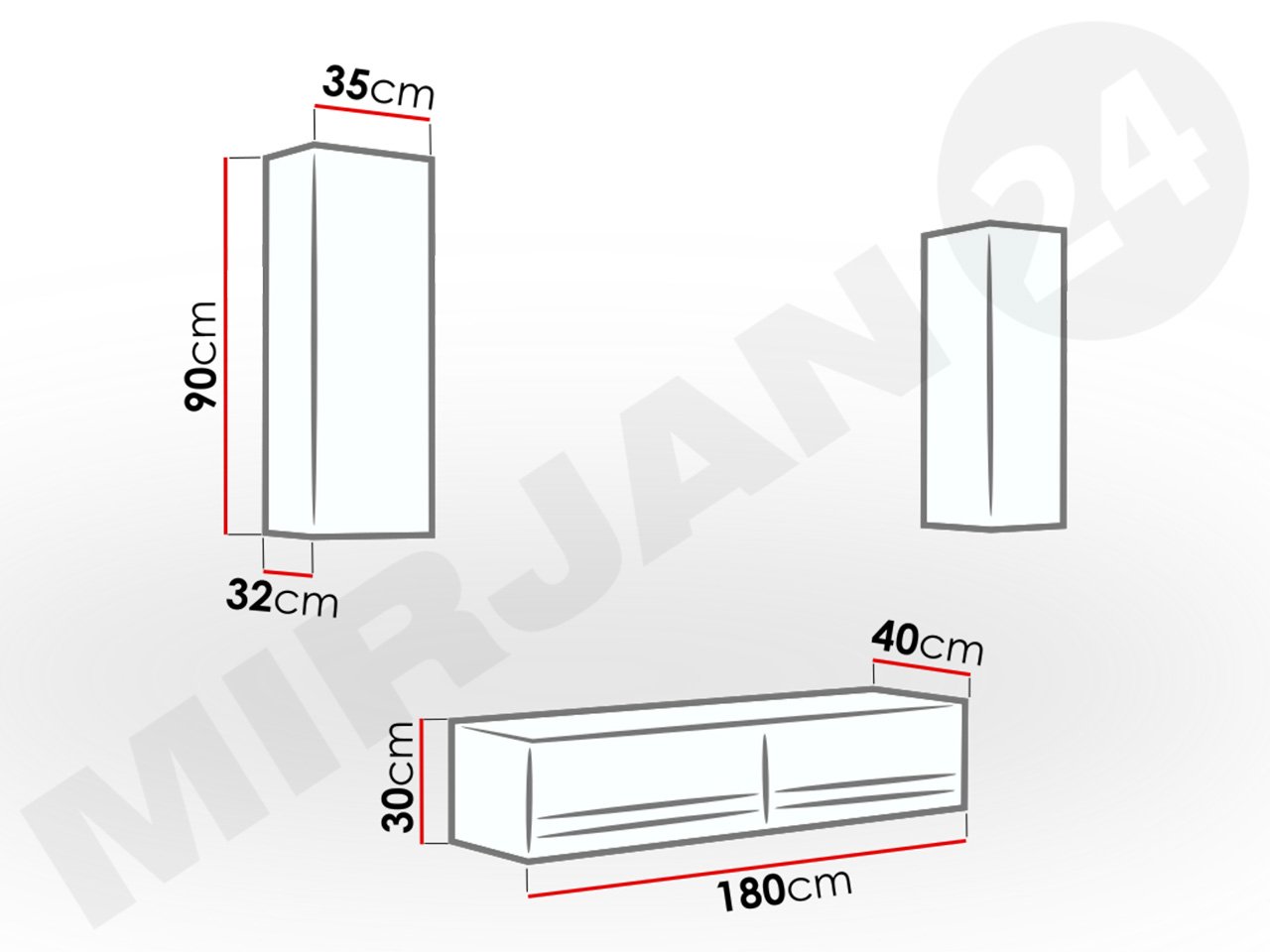 - מזנון טלוויזיה צף: רוחב: 180 ס”מ/ גובה: 30 ס”מ/ עומק: 40 ס”מ