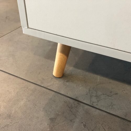 המזנון עשוי MDF בציפוי מלמין, רגליים מעץ בציפוי דמוי אלון.