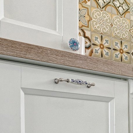 מטבח קלאסי לבן עם חיתוכים מסוגננים. ניתן לשלב עם אריחים ואביזרים אתניים