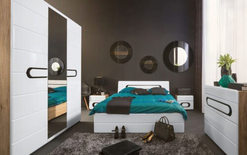 קולקציית Byron נבדלת על ידי קצוות מעוגלים וידיות מקוריות, שבזכותם היא תדגיש בצורה מושלמת עיבודים מודרניים. פריט זה עשוי עץ סן רמו. ובחזית צבעו לבן מבריק בשילוב אלמנט זכוכית שחור בצורת אליפסה. מערכת סגירה שקטה של דלתות ומגירות.