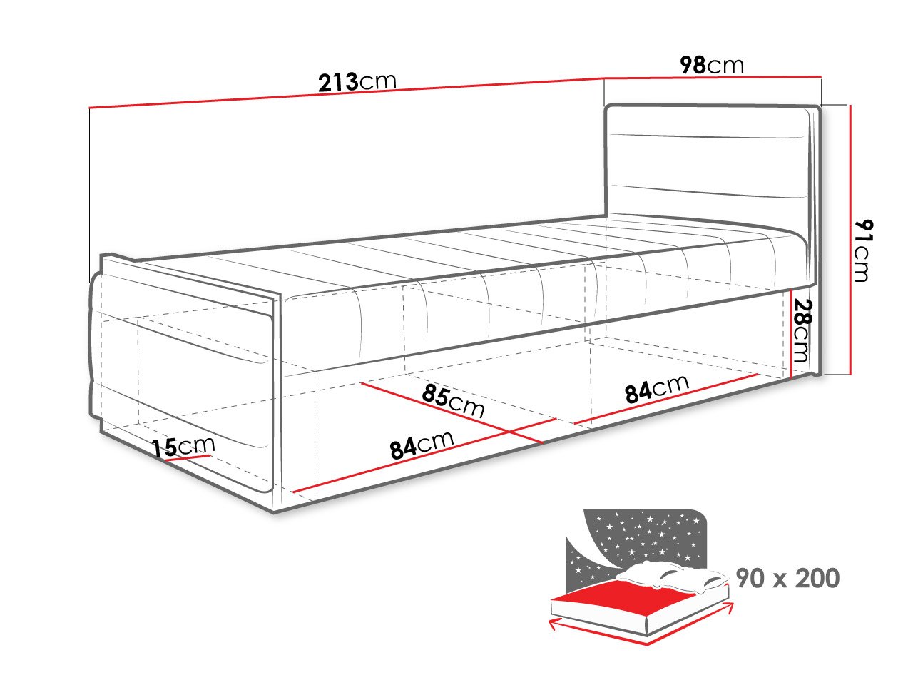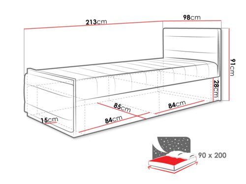 - אורך: 213 ס”מ / רוחב: 98 ס”מ / גובה: 91 ס”מ,