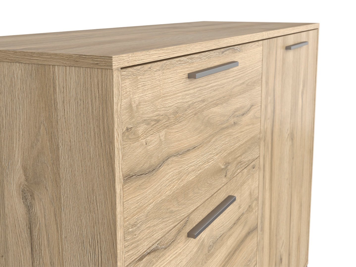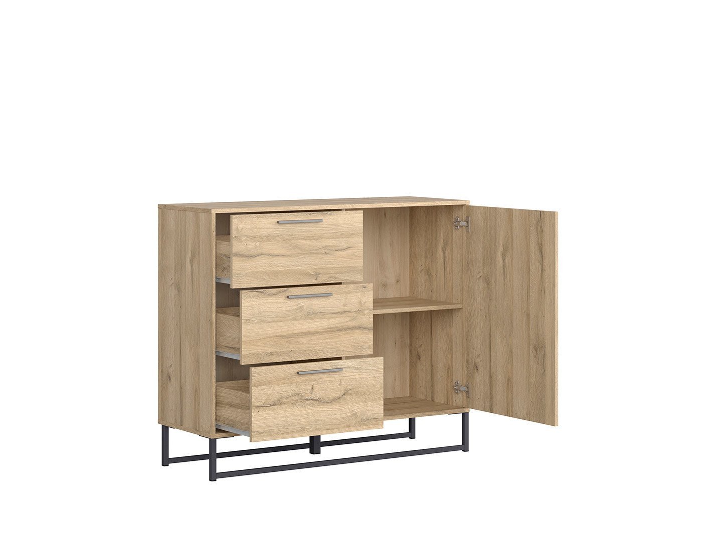 עומק: 39 ס”מ / רוחב: 112.5 ס”מ / גובה: 95 ס”מ / חומר: מתכת ולוח עץ / מספר דלתות: 1 / מספר מגירות: 3 / משקל: 39.65 ק”ג