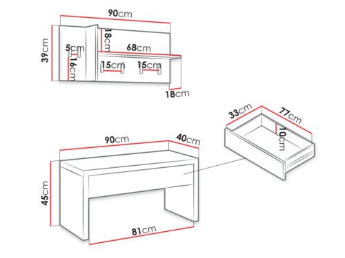 - מתלה: רוחב: 90 ס”מ/ גובה: 39 ס”מ/ עומק: 18 ס”מ