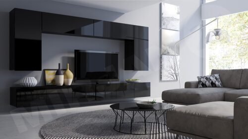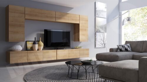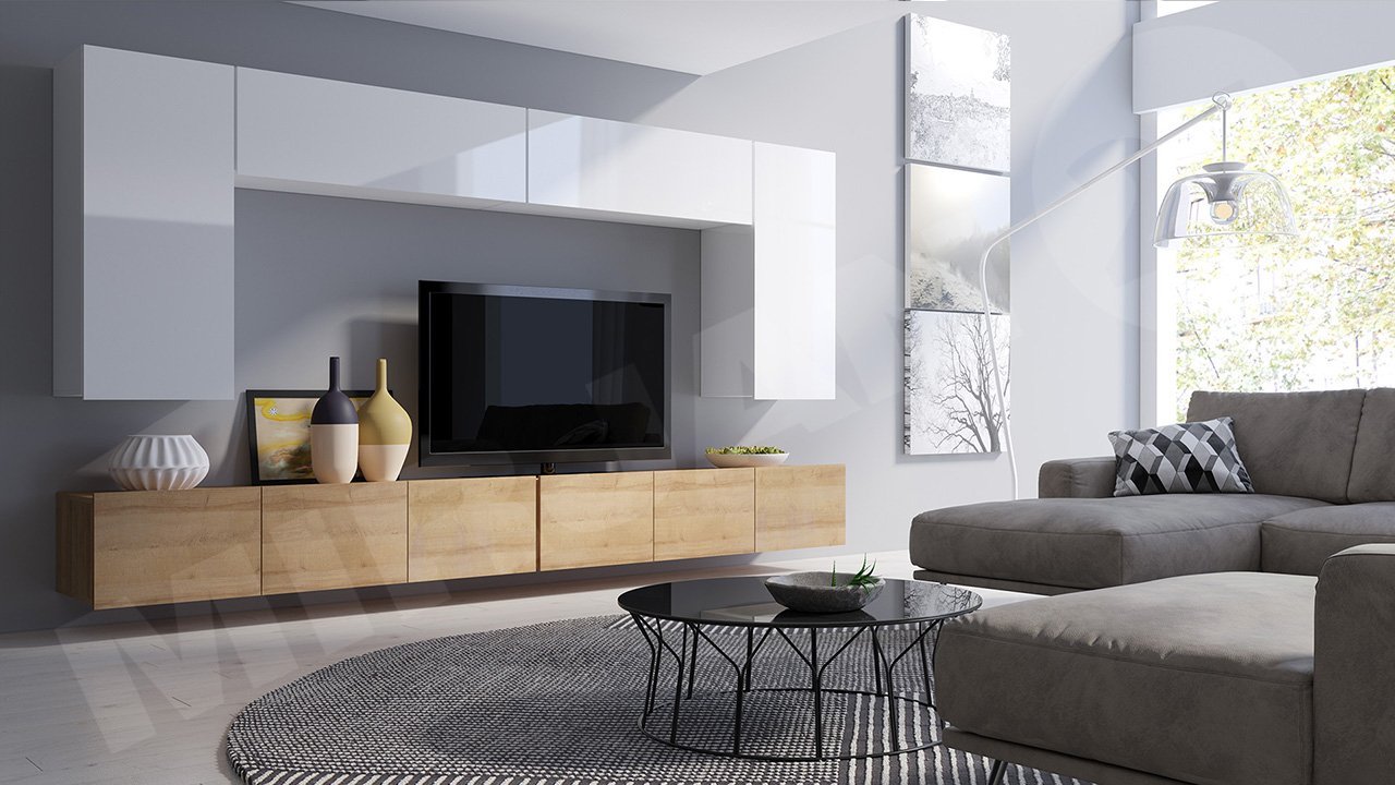 סט מזנון טלוויזיה מודרני לסלון כולל מזנון טלוויזיה תלוי או עומד לבחירה + ארונות אחסון תוליים