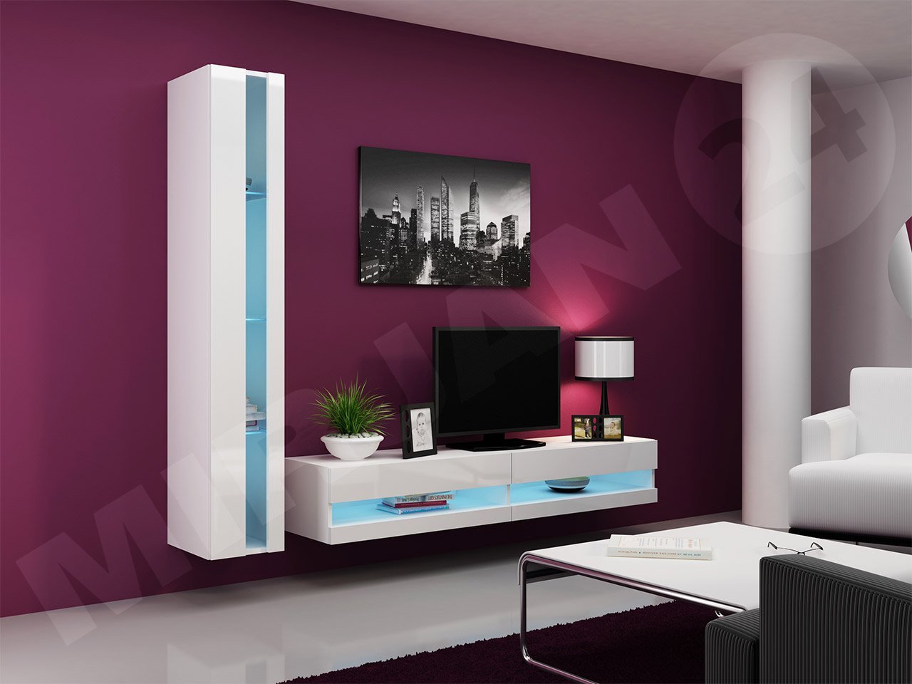 סט מזנון טלוויזיה מודרני לסלון כולל מזנון טלוויזיה וויטרינה / ארון תלוי תואם.