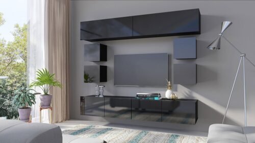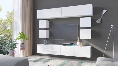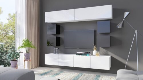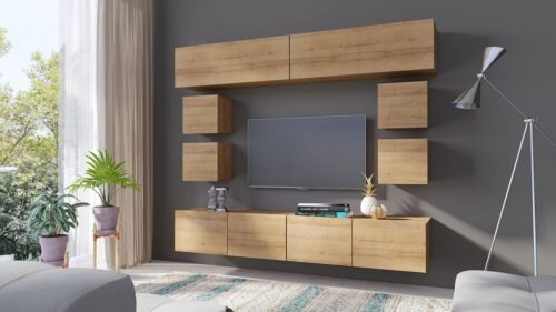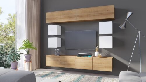סט מזנון טלוויזיה פונקציונלי ומודרני לסלון כולל מזנון טלוויזיה + וויטרינה תלויה + קומדה