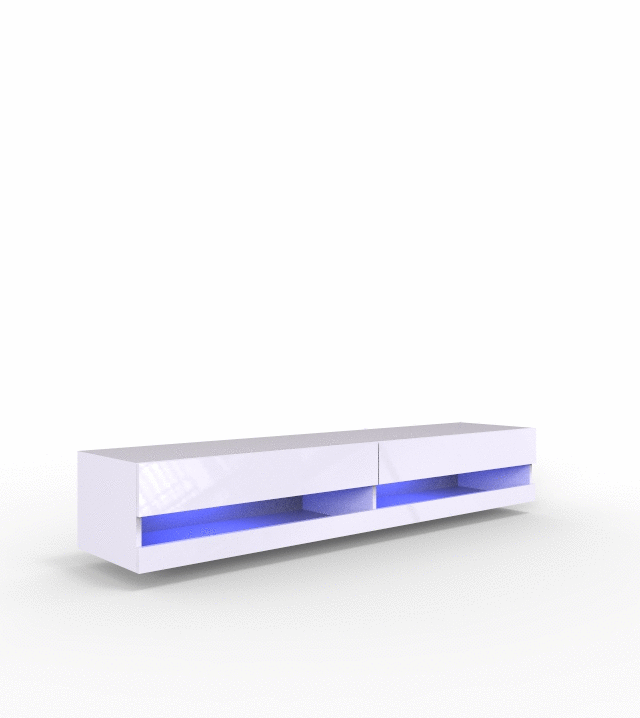 סט מזנון טלוויזיה צף שחור מבריק + תאורה דגם Zigo