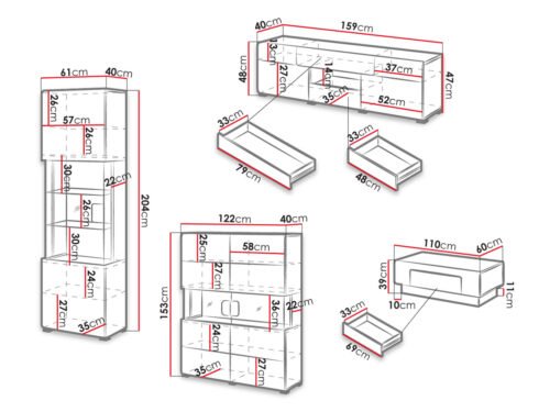 רוחב: 61 ס”מ, גובה: 204 ס”מ, עומק: 40 ס”מ - שידת טלוויזיה: