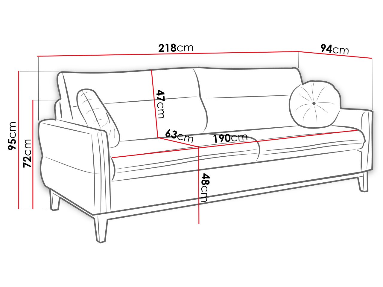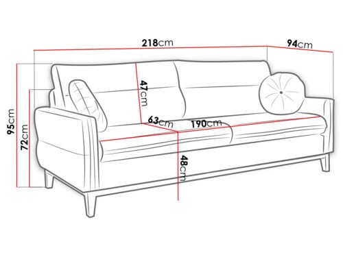 - גודל ספה אורך: 218 ס”מ / רוחב: 94 ס”מ / גובה: 95 ס”מ