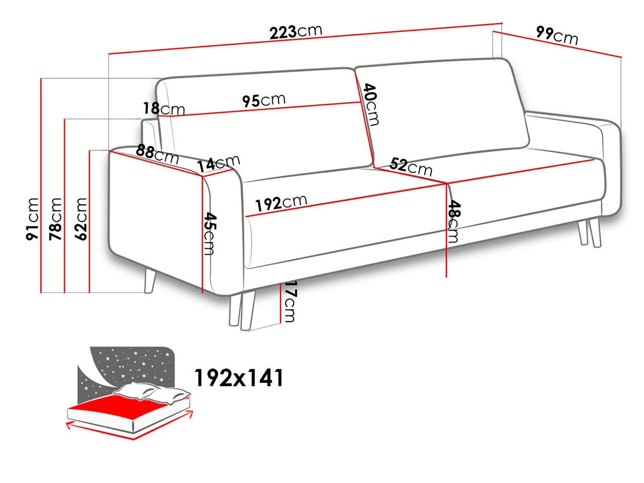 - אזור שינה: 192 על 141 ס”מ