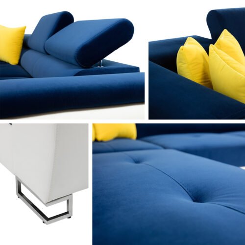ספה פינתית בצורת L נפתחת למיטה+ ארגז אחסון! בעלת רכות מושלמת! עם משענות ראש מתכווננות. ורגליים מעוצבות