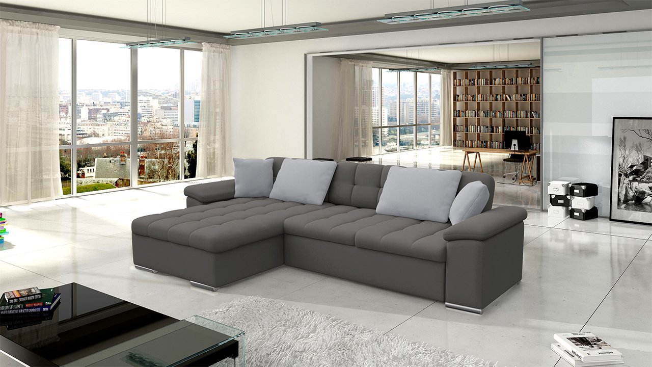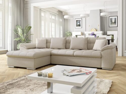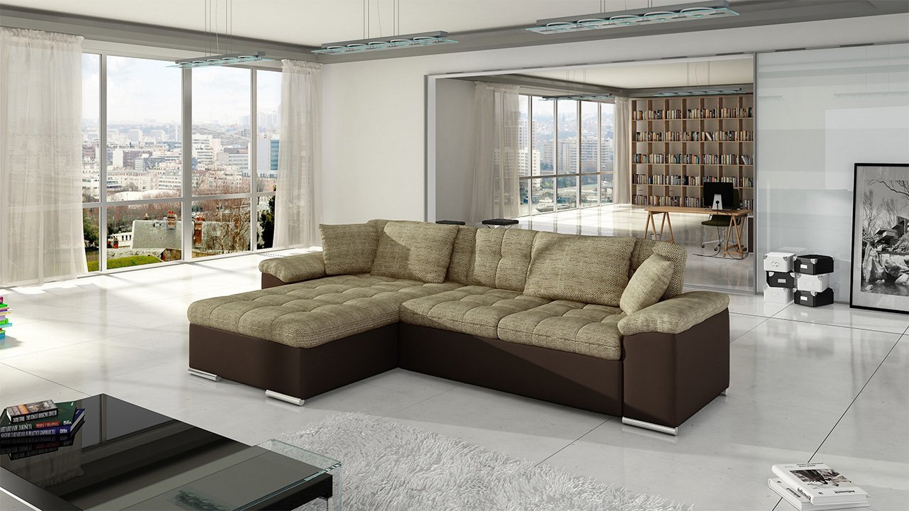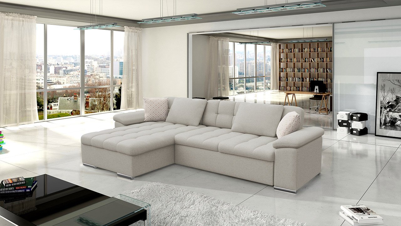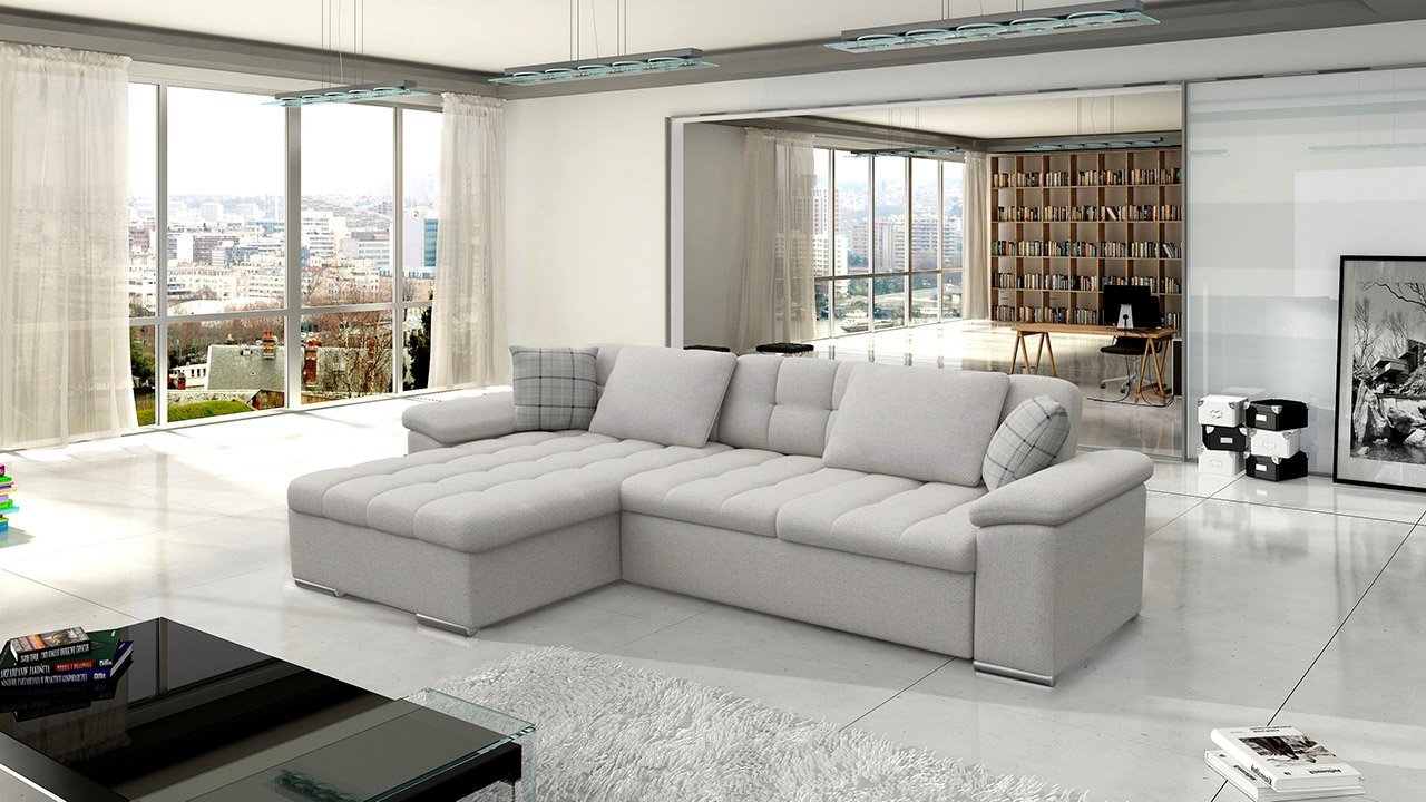 ספה פינתית בצורת L נפתחת למיטה+ ארגז אחסון! בעלת רכות מושלמת! עם משענות ראש מתכווננות. ורגליים מעוצבות