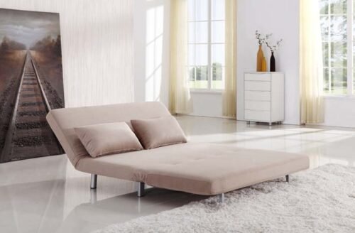ספה דו-מושבית נפתחת למיטה זוגית, בעלת עיצוב מודרני, רגליים ובסיס ממתכת דגם הרפר.