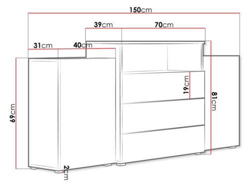 רוחב: 150 ס”מ / גובה: 81 ס”מ / עומק: 39 ס”מ