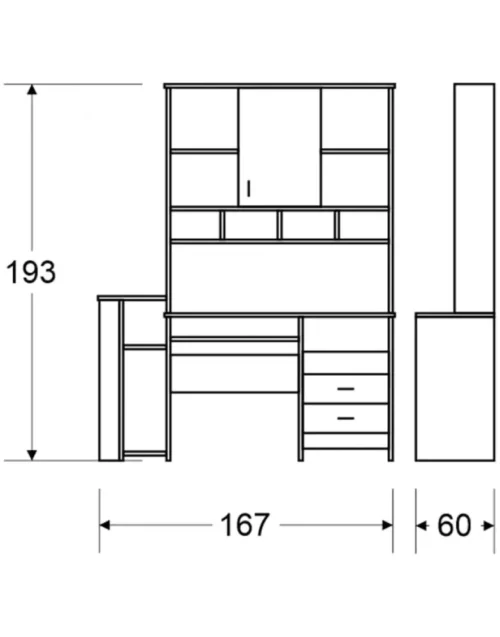 מידות: רוחב: 167 ס”מ / גובה: 193 ס”מ / עומק: 60 ס”מ