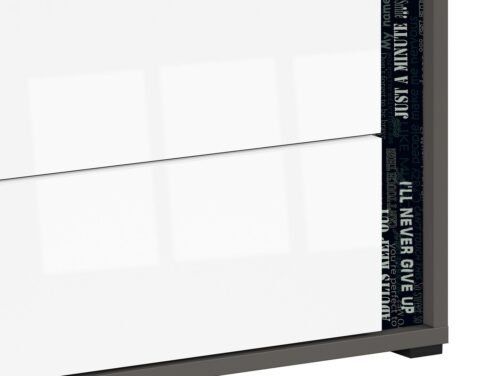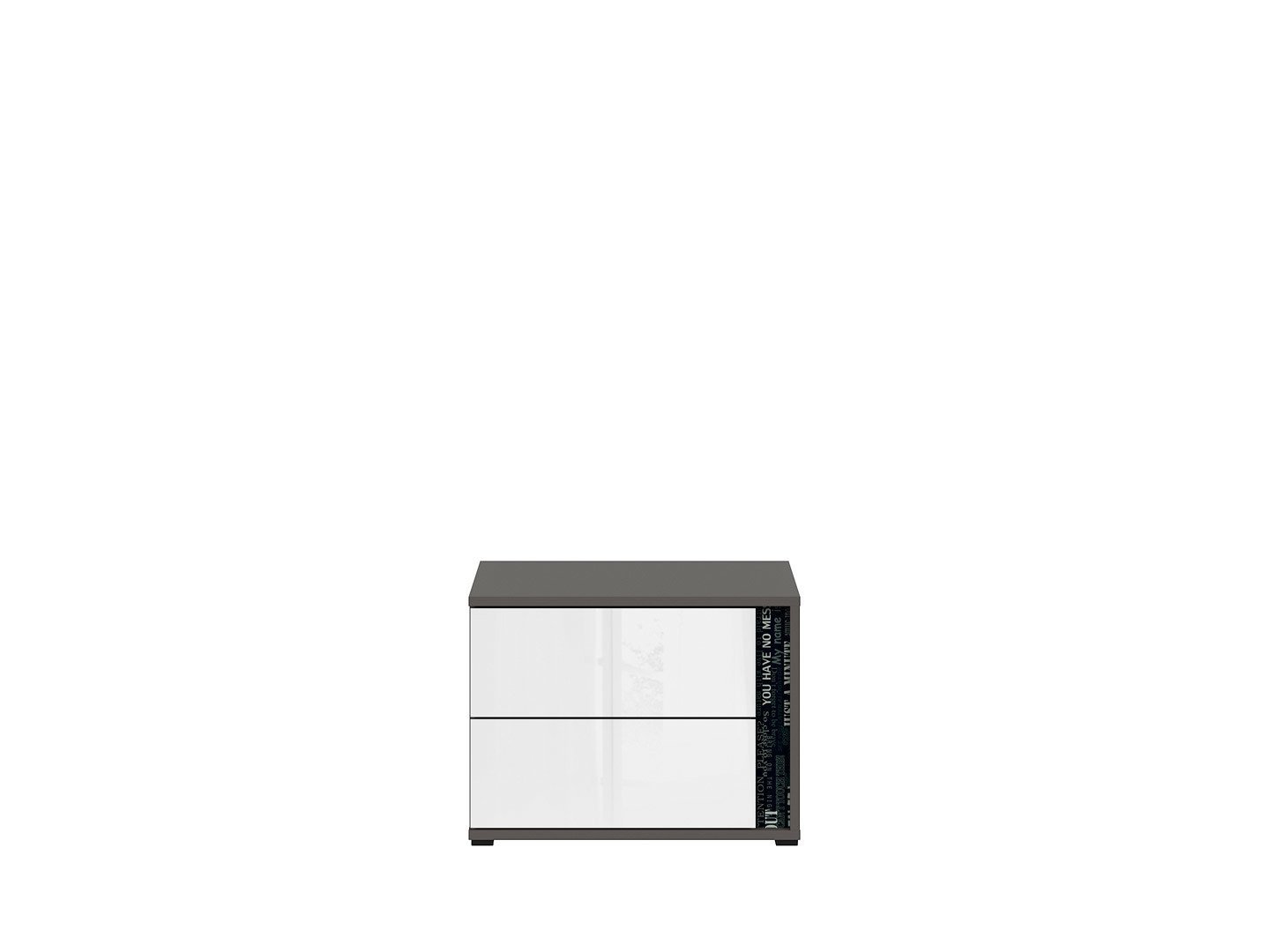 שידה למיטה מקולקציית Graphic. מושלם לחדר שינה. החלק העליון של השולחן מכוסה בחומר המגביר את עמידותו בפני שריטות ונזקים מכניים אחרים הנובעים משימוש יומיומי. ניתן לבחור בשילוב צבעים / הדפסים.