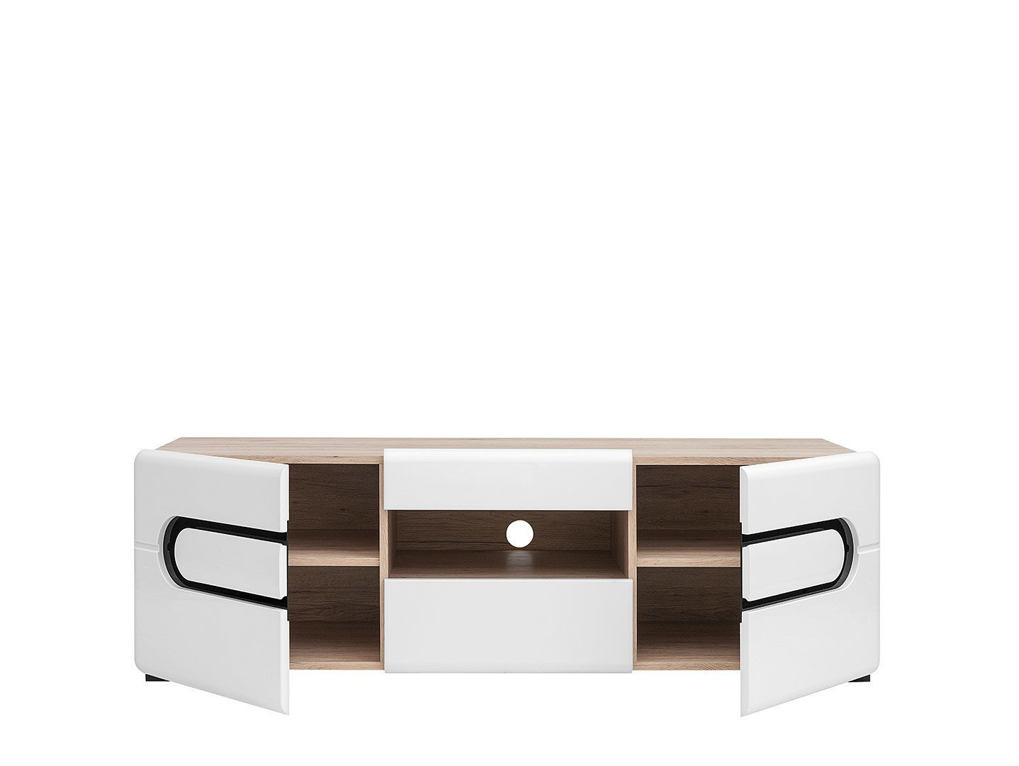 קולקציית Byron נבדלת על ידי קצוות מעוגלים וידיות מקוריות, שבזכותם היא תדגיש בצורה מושלמת עיבודים מודרניים. פריט זה עשוי עץ סן רמו. ובחזית צבעו לבן מבריק בשילוב אלמנט זכוכית שחור בצורת אליפסה. דלת נוחה לשימוש הנפתחת בהטיה. כולל 2 חורים לאוורור ולכבלים.