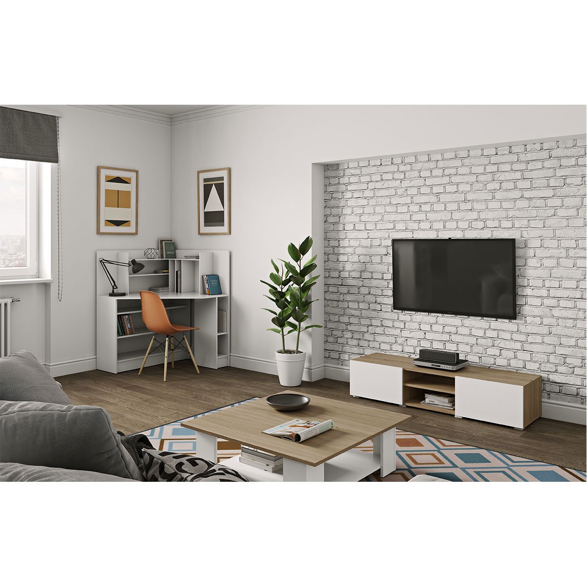 | צבע | עץ אלון משולב דתות לבנות, שחור עם דלתות בטון |