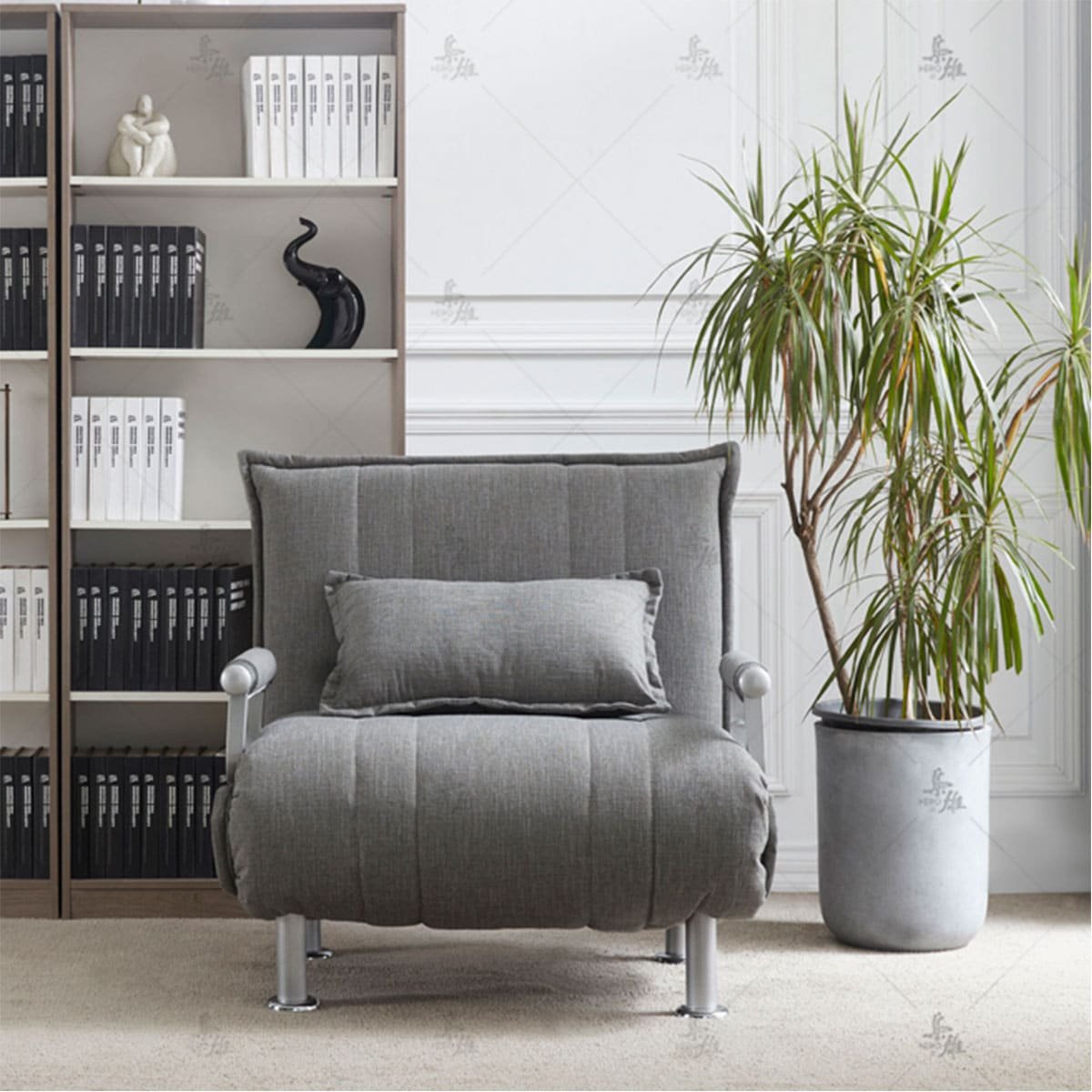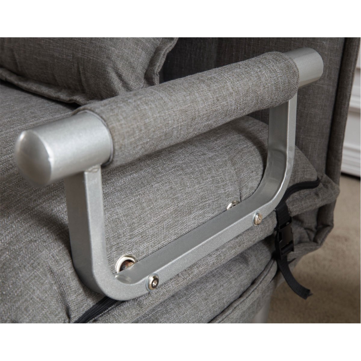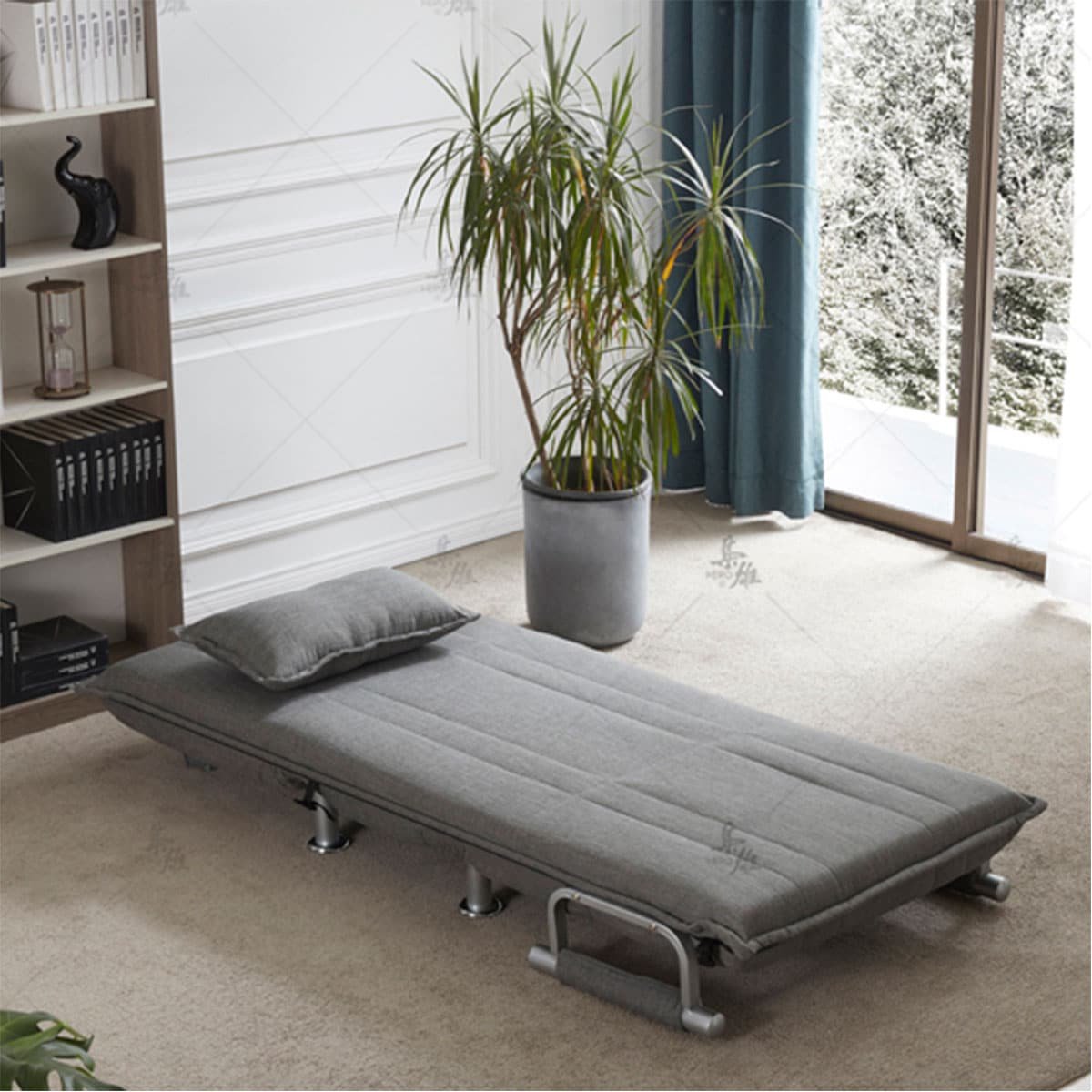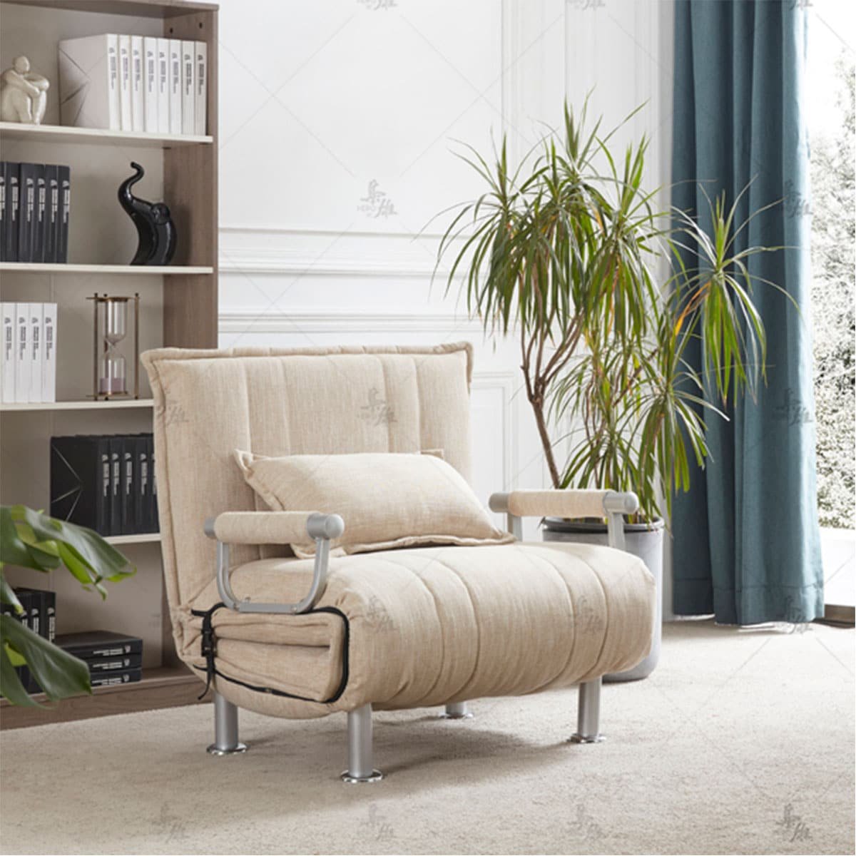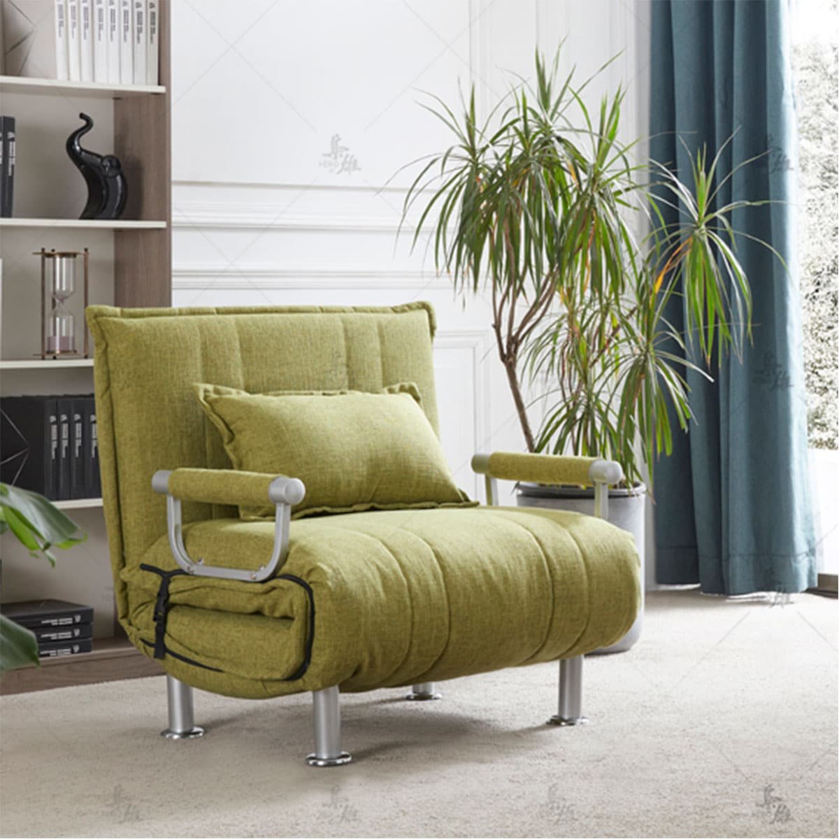 כורסת בד נפתחת למיטת יחיד, בעלת עיצוב מודרני ורגלי מתכת דגם טוביאס.